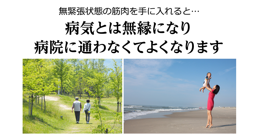 単に痛みから解放されるだけではありません。基礎体温が上がります。一説によると、基礎体温が1度上がれば免疫力が500~600%高まると言われています。つまり、ウイルスや細菌などの外敵から身を守る免疫力が強くなるということです。しかも、やわらかい筋肉になり体内の血行循環がよくなれば、公に言われている栄養の3分の1程度でも、人間は充分に健康を維持できるようになります。